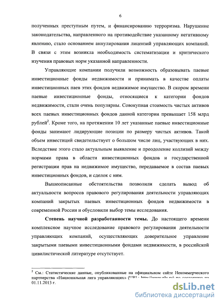 Вышеописанные обстоятельства позволили сделать вывод об актуальности вопросов правового регулирования деятельности управляющих компаний закрытых паевых инвестиционных фондов недвижимости в современной России и обусловили выбор темы исследования.