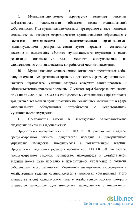 В диссертации анализируется муниципальные концессионные соглашения в сфере использования муниципальной недвижимости для оказания коммунальных услуг.