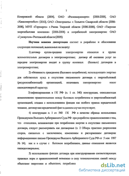 5) выявлены функции, которые выполняет конструкция квазидоговора по снабжению энергией бытового потребителя (п. 1 ст. 540 ГК РФ);