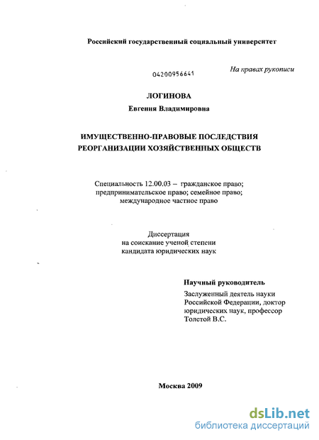 тенденций, и перспектив его развития; Проведенное исследование-сделало возможным осуществить системный: анализ правовой природы реорганизации юридических лиц, сформулировать и научно обосновать авторское, определение понятия «реорганизация юридического, лица», выявить имущественные последствия реорганизации хозяйственных обществ^ дать им правовую характеристику.,