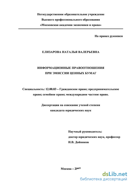 Образцова Н.В. Уголовная ответственность за изготовление или сбыт поддельных денег нлп ценных бумаг: Дне, ... канд. юрид. наук. - М, 2006; Грищенко A,R Механизм административно-правового регулированич рынка ценных бумаг в Российской Федерации; Дис, „. канд. юрид. наук. - М., 2003; Шаповалов А.Г. Правовой режим сведений служебного характера об эмитентах на рынке ценных бумаг: Дис. ... канд. юрид. наук. - М„ 2007.