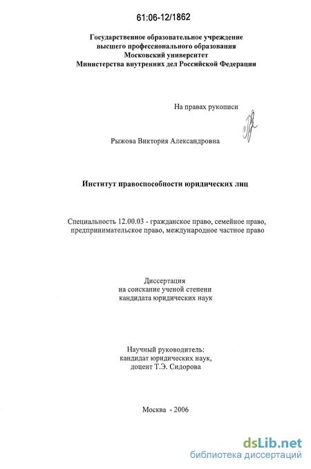 Все это позволяет считать проблему изучения гражданской правоспособности юридического лица как субъекта гражданских правоотношений актуальной не только с теоретической, но и с практической точек зрения. Указанные обстоятельства обусловили выбор темы диссертационного исследования, круг рассматриваемых проблем и схему их освещения.