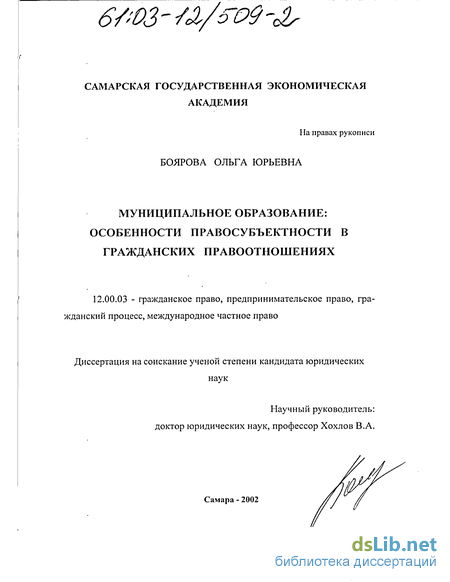 - Содержание гражданской правосубъектности муниципальных образований в отношениях собственности