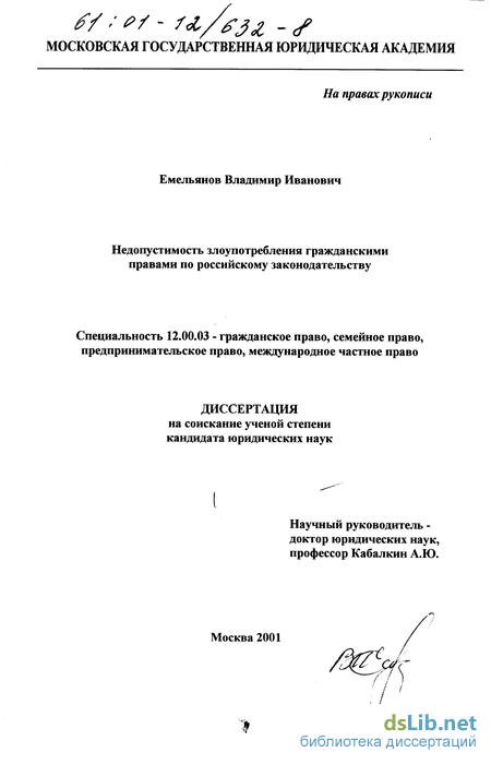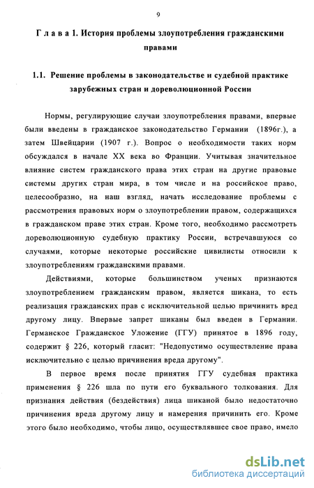 Глава 1. История проблемы злоупотребления гражданскими правами 9