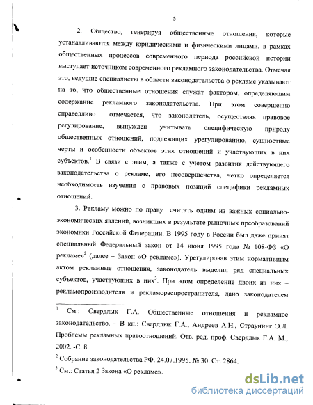 4. Тема правового регулирования общественных отношений, возникающих и развивающихся в сфере рекламы, в том числе и гражданско-правового регулирования, привлекает к себе внимание многих исследователей, в частности: Вольдмана Ю.Ф, Кузнецовой О.Б., Медянковой Е.В., Свердлыка Г.А., Страунинга Э.Л., Черячукина Ю.В. и других. Однако анализ опубликованных работ, имеющихся как в прессе, так и в специальных изданиях, позволяет утверждать, что обязательства по оказанию рекламных услуг до сих пор на монографическом или диссертационном уровне достаточным образом не исследованы.