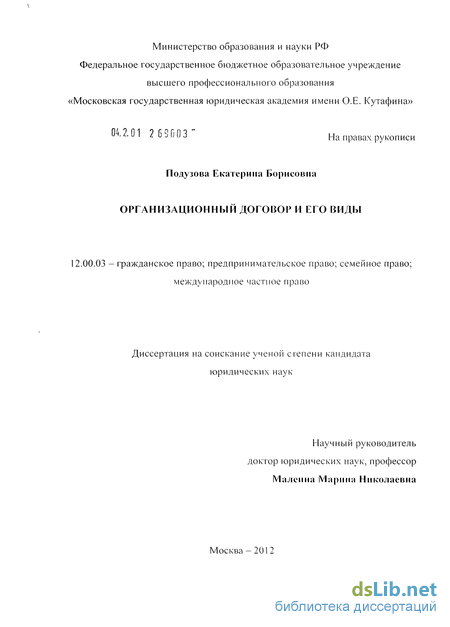 Степень научной разработанности и теоретическая основа исследования. Исследованием и разрешением проблем, связанных с организационными договорами, занимались многие отечественные ученые. В дореволюционный период данные проблемы рассматривались Е. Даниловым, Л.А. Кассо, Г.Ф. Шершеневичем и др. В советский период изучению проблем организационных отношений уделяли внимание в своих работах такие цивилисты как М.М. Агарков, М.К. Александров-Дольник, М.И. Брагинский, С.Н. Братусь, Н.В. Васева, Н.Д. Егоров, Н.И. Клейн, О.А. Красавчиков, Е.В. Кулагина, М.И. Кулагин, А.М. Мартемьянова, И.Б. Новицкий, Г.А. Свердлык, Е.А. Суханов, М.А. Тарасов и др.