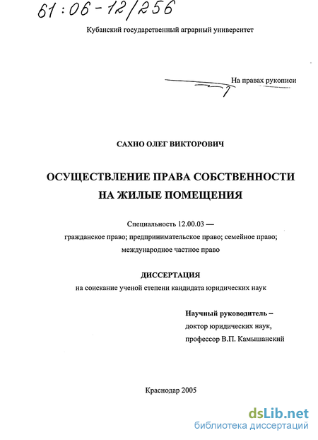 Предметом исследования является комплекс проблем, связанных с возникновением и осуществлением субъектами имущественных прав на жилые помещения.