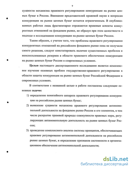 Целью настоящего диссертационного исследования является комплексное изучение основных проблем государственно-правового регулирования в области защиты конкуренции на рынке ценных бумаг Российской Федерации в современных условиях.