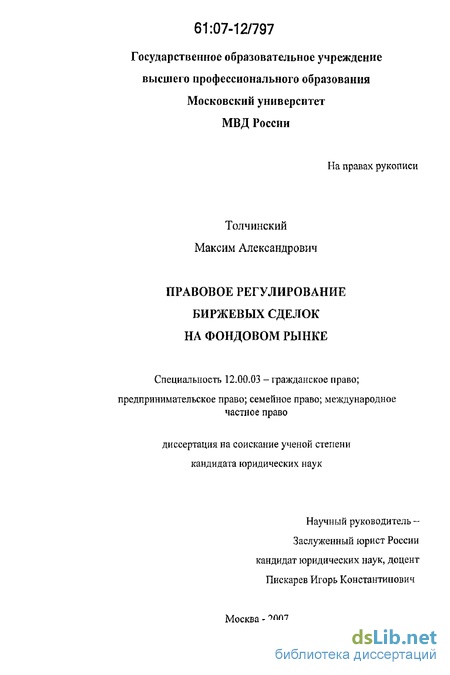 Объектом исследования выступают организационно - правовые отношения, связанные с совершение биржевых сделок на фондовом рынке России.
