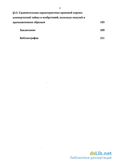 3.3. Сравнительная характеристика правовой охраны коммерческой тайны и изобретений, полезных моделей и промышленных образцов 193