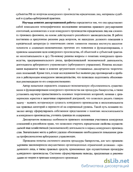 Структура работы. Исходным методологическим положением исследования послужило признание единства социально-экономического содержания и правовой формы конкурсного производства, следствием чего явилась следующая логика построения работы: сущность и основания (социально-экономические и правовые) конкурсного производства (первая глава)-субъекты конкурсных правоотношений (вторая глава) - юридическое содержание конкурсного производства (третья глава), что обусловлено последовательностью изложения соответствующих норм в законе о несостоятельности, подчинено логике правоприменительного процесса и в известной степени соответствует интеллектуальной традиции изложения соответствующих вопросов в доктрине5.