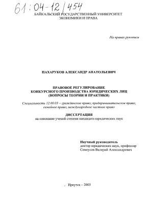 Степень научной разработанности правовых вопросов конкурсного производства в монографическом плане довольно высока и основьшается на серьезном теоретическом фундаменте классических работ отечественных и зарубежных ученых. Проблемы правового регулирования конкурсных отношений исследовались многими правоведами, начиная с классиков отечественной юридической мысли А. П. Баштова, А. X. Гольмстена, А. А. Добровольского, К. И. Малышева, Е. А. Нефедьева, А. Ф. Федорова, 77 77 Цитовина, Г. Ф. Шершеневича и др. В последние годы в цивилистической доктрине наблюдается повышенный интерес к изучению правового института несостоятельности в целом: имеется несколько диссертационных работ, солидных монографических исследований, научно-практических комментариев, специальных учебных пособий, посвященных общетеоретическим и сравнительно-правовым аспектам механизма правового регулирования данного социально-экономического явления. Таким образом, следует констатировать, что пробле-