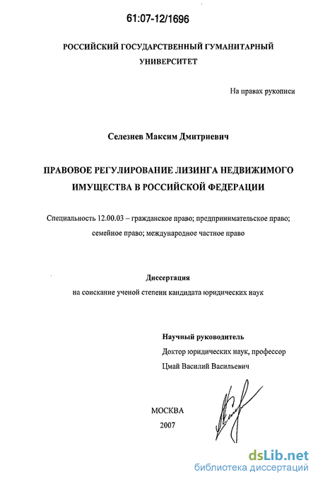 Научная новизна работы заключается в том, что диссертационная работа является комплексным исследованием лизинга недвижимого имущества.