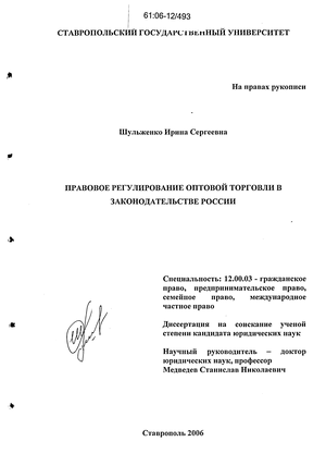 Актуальность исследования. Глубокие перемены, происходящие в нашей стране, охватывают сферу оптовой торговли и деятельность ее субъектов, в существенной мере актуализируют проблемы правовой регламентации всего спектра отношений, возникающих в данной связи.