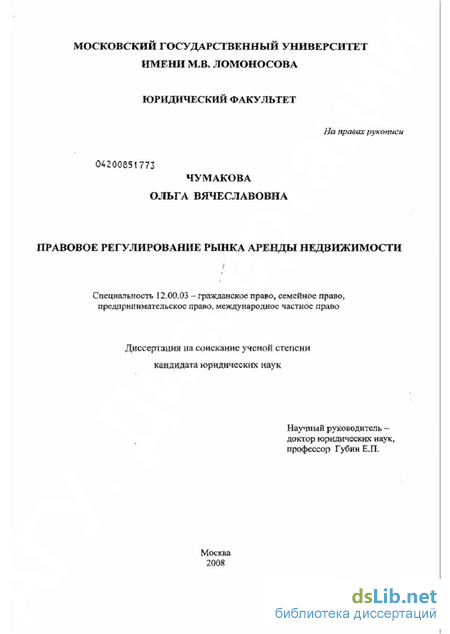 В современной правовой науке отсутствуют комплексные исследования целостной системы правового регулирования отношений на рынке аренды недвижимости.