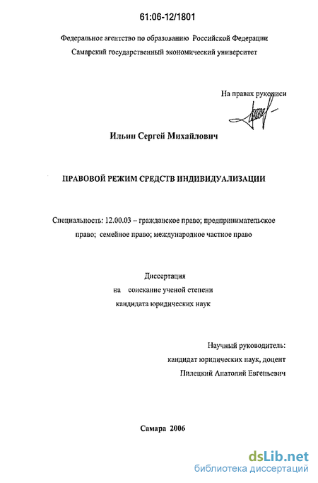 Апробация результатов исследования. Положения диссертации частично изложены автором в опубликованных работах, выступлениях на научно - практических конференциях, выводы и предложения автора применяются при преподавании курсов «Гражданское право», «Право промышленной собственности», «Предпринимательское право» в Институте права Самарского государственного экономического университета.