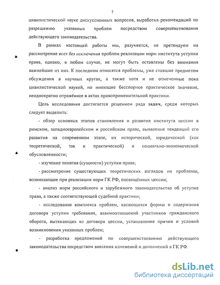 Цель исследования - комплексное изучение проблем, складывающихся в ходе процессов реализации норм ГК РФ о цессии, вызванных несовершенным правовым регулированием данного института, а также недостатками правоприменительной практики, рассмотрение возникших в связи с этим в