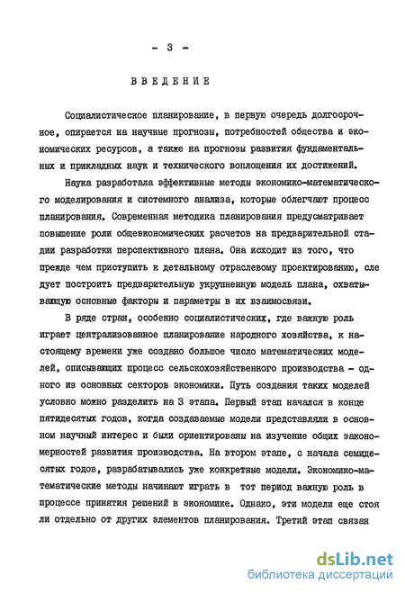 В ряде стран, особенно социалистических, где важную роль играет централизованное планирование народного хозяйства, к настоящему времени уже создано большое число математических моделей, описывающих процесс сельскохозяйственного производства - одного из основных секторов экономики. Путь создания таких моделей условно можно разделить на 3 этапа. Первый этап начался в конце пятидесятых годов, когда создаваемые модели представляли в основном научный интерес и были ориентированы на изучение общих закономерностей развития производства. На втором этапе, с начала семидесятых годов, разрабатывались уже конкретные модели. Экономико-математические методы начинают играть в тот период важную роль в процессе принятия решений в экономике. Однако, эти модели еще стоя ли отдельно от других элементов планирования. Третий этап связан