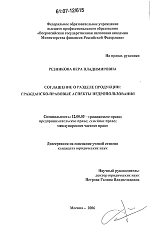 предпринял комплексное научное изучение соглашения о разделе продукции как нового гражданско-правового договора в контексте института договорного недропользования в целом.