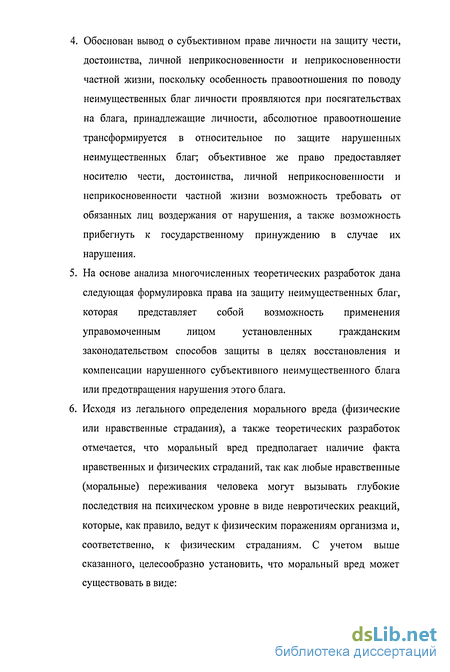 Положения, выносимые на защиту. Результатами научного исследования вопросов, связанных с механизмом защиты неимущественных благ, являются следующие положения, которые определяют научную новизну диссертации:
