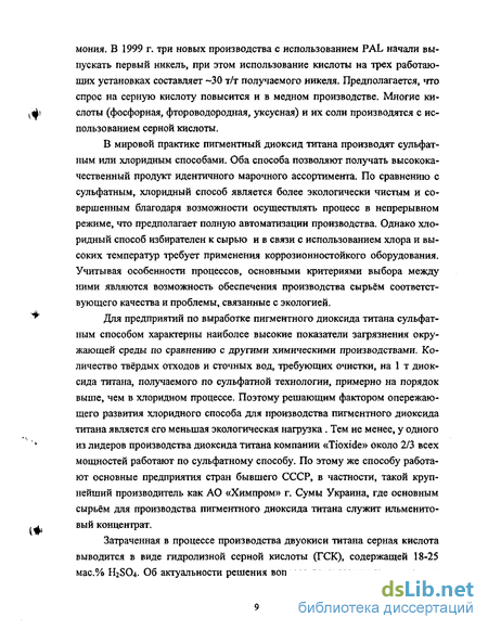 Используется этот способ и при очистке сернокислых растворов, содержащих неорганические примеси, например гидролизной серной кислоты производства пигментного диоксида титана. На этом производстве, наравне с большим количеством ГСК, в качестве отходов образуется и семиводный сульфат железа. На ряде предприятий бывшего СССР в своё время были созданы установки по переработке сульфата железа путем его термического разложения с получением товарной продукции — красного железооксидного пигмента и серной кислоты [4]. Утилизация ГСК для промышленных производств до сих пор представляет значительные трудности. Это объясняется как большим объёмом данного отхода (при переработке ильменитовых кон-центратов на 1 т Ті02 получается до 5 м гидролизной кислоты), так и тем, что все известные методы переработки связаны с большими дополнительными затратами, которые лишь частично компенсируются стоимостью полученных продуктов. Наиболее практичным вариантом было бы возвращение ГСК в производственный цикл и следовательно сокращение её общего потребления [5].