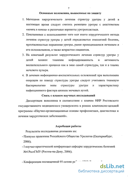 Обоснованы показания к выбору методик хирургического лечения (внутренняя оптическая уретротомия, резекция уретры или уретропластика) стриктур уретры у детей в зависимости от этиологии, протяженности поражения и длительности стриктурной болезни.