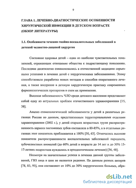 ГЛАВА 1. Лечебно-диагностические особенности хирургической инфекции в детском возрасте (обзор литературы) 9