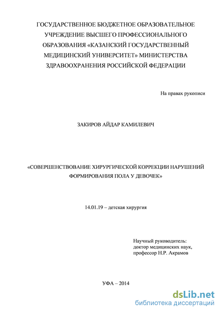 Работа выполнена на кафедре детской хирургии с курсом факультета повышения квалификации и профессиональной переподготовки специалистов Государственного бюджетного образовательного учреждения высшего профессионального образования «Казанский государственный медицинский университет» Министерства здравоохранения