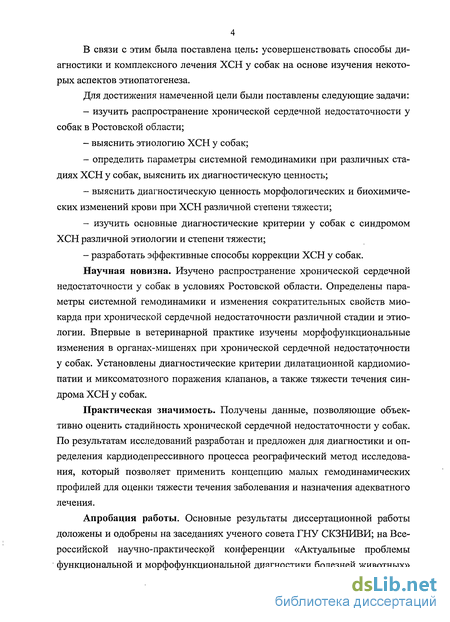 В связи с этим была поставлена цель: усовершенствовать способы диагностики и комплексного лечения ХСН у собак на основе изучения некоторых аспектов этиопатогенеза.