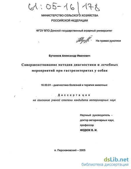 Актуальность темы. Среди болезней органов пищеварения гастроэнтериты занимают первое место по распространенности и обуславливают гибель 34,73% собак от общего падежа.