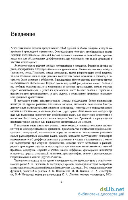 Теория сингулярных возмущений интенсивно развивается, начиная с основополагающих работ А. Н. Тихонова. К настоящему времени создай ряд методов построения асимптотических разложений решений различных св. задач. Это метод пограничных функций, развитый в работах А. Б, Васильевой, М, И. Вишика, Л. А. Люстерни-ка, В. Ф. Бутузова; метод регуляризации С. А. Ломова, методы усредпепия, ВКБ,