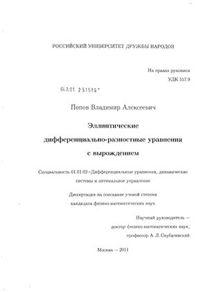 и(хі, 0) = 2(xi), -l <хг< I, u(-l, x2) = <Рз(х2), u(l, x2) = u(0, x2), 0 < x2 < 1, где ifi, ip2, ifs — заданные непрерывные функции. Решение данной задачи приведено в работе1, оно основано на сведении к интегральному уравнению Фредгольма второго рода и использовании принципа максимума. Для произвольной области и общих нелокальных условий такая задача была сформулирована как нерешенная 4. Такого типа задачи получили дальнейшее развитие в работах Н.В. Житарашу и С.Д. Эйдельмана, Я.А. Ройтберга и З.Г. Шефтеля, А.В. Бицадзе, В.А. Ильина и Е.И. Моисеева, К.Ю. Кишкиса, А.К. Гущина и В.П. Михайлова и др. Основы общей теории для эллиптических уравнений порядка 2т с нелокальными краевыми условиями общего вида были заложены в работах А.Л. Скубачевского и его учеников 5 6 7. С нелокальными задачами для эллиптических дифференциальных уравнений тесно связаны краевые задачи для функционально-дифференциальных уравнений. Теория эллиптических и параболических функционально-дифференциальных уравнений впервые построена в работах А.Л. Скубачевского и его учеников в течение последних 30 лет (А.Л. Скубачевский 8, Л.Е. Россовский 9, Р.В. Шамин 10 и др.). Важность создания этой теории мотивируется принципиально новыми свойствами таких уравнений, а также важными приложениями. Применение этой теории позволило получить новый класс сек-ториальных операторов удовлетворяющих гипотезе Т. Като (Р.В. Шамин п), получить 1 Бицадзе А.В., Самарский А.А. ДАН СССР. - 1969. - Т. 185. - С. 739-740. 2 Онанов Г.Г., Скубачевский А.Л. Прикладная механика. 1979. Т. 15. Na 5. С. 39-47. 3 Skubachevskii A. Basel-Boston-Berlin: Birkhauser, 1997. 4 Самарский А.А. Дифференц. уравнения. 1980. Т. 16. № 11. С. 1925-1935. 5 Скубачевский А.Л. Современная математика. Фундамент, направления, №26, РУДН, М., 2007, 3-132 6 Скубачевский А.Л. Современная математика. Фундамент, направления, №33, РУДН, М., 2009, 3-179 7 Гуревич П.Л. Мат. заметки, 2002. Т. 72, вып. 2. С. 178-197. 8 Skubachevskii A.Basel-Boston-Berlin: Birkhauser, 1997. 9 Россовский Л.Е. Мат. заметки. - 1996. - Т. 59, № 1. - С. 103-113. 10 Скубачевский А.Л., Шамин Р.В. ДАН, 2001. - Т. 379. - №5. - С. 735-738. 11 Шамин Р.В. Мат. сб. - том 194, 2003 - вып. 9 - С. 1411-1426. новые достаточные условия существования многолепестковых вращающихся волн в нелинейных лазерных системах 12 и др. Параболические функционально-дифференциальные уравнения с преобразованием временной переменной рассматривались в работах В.В. Власова 13 14. Интерес к эллиптическим уравнениям с вырождением возник после работы М.В. Келдыша 15. Эта статья стала отправной точкой для исследований многих математиков и сыграла важную роль в развитии теории вырождающихся дифференциальных уравнений. М.В. Келдыш показал, что при определенных условиях часть границы (многообразие вырождения) свободна от краевых условий. Подобными задачами занимались многие математики: О.А. Олейник 16, М.И. Вишик 17 и другие. Работы Г. Фикеры18, О.А. Олейник 19 явились началом нового этапа в развитии теории эллиптических уравнений с вырождением. Данной тематике посвящены работы Е.В. Радкевича 20, A.M. Ильина 21, в работе О.А. Олейник и Е.В. Радкевича 22 приведен подробный обзор работ посвященных уравнениям с неотрицательной характеристической формой. Статья В.П. Глушко, Ю.Б. Савчен-ко посвящена вырождающимся эллиптическим уравнениям высокого порядка. Цель работы Целью работы является изучение следующих взаимосвязанных вопросов: получение априорных оценок решений эллиптических дифференциально-разностных уравнений с вырожд