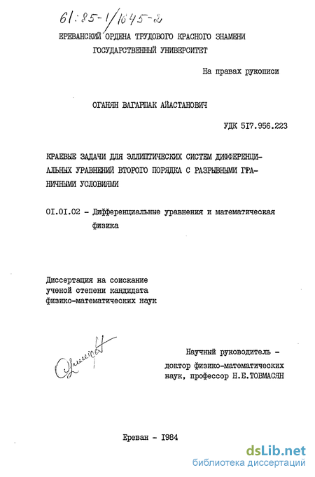 - Исследование однородной задачи Дирихле для эллиптических систем (І) в классе разрывных функ ций