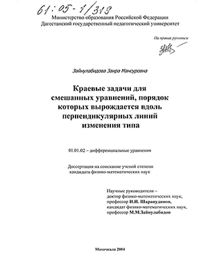 Зайнулабидова Заира Мансуровна. Краевые задачи для смешанных уравнений, порядок которых вырождается вдоль перпендикулярных линий изменения типа : Дис. ... канд. физ.-мат. наук : 01.01.02 : Махачкала, 2004 140 c. РГБ ОД, 61:05-1/319