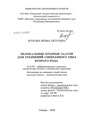 Апробация работы. Результаты, приведенные в диссертации, докладывались автором и обсуждались на областном семинаре по дифференциальным уравнениям под руководством д. ф.-м. н., проф. В.Ф. Волкодавова (г. Самара, СамГПУ, 2004 - 2005 гг.), научных семинарах по теории дифференциальных уравнений под руководством д. ф.-м. н., проф. К.Б. Сабитова (г. Самара, СамГПУ, г. Стерлитамак, СФ АН РБ, 2006 - 2010 гг.), на научном семинаре кафедры "Дифференциальные уравнения" Казанского государственного университета (науч. рук. - д.ф.-м.н., проф. В.И. Жегалов, 2010 г.), а также на следующих научных конференциях: четвертой Всероссийской научной конференции с международным участием "Математическое моделирование и краевые задачи" (29 - 31 мая 2007г., Самара, СамГТУ), международной конференции, посвященной 100-летию со дня рождения академика И. Н. Векуа "Дифференциальные уравнения, теория функций и приложения" (28 мая - 2 июня 2007г., Новосибирск, НГУ), международной научной конференции "Дифференциальные уравнения и смежные проблемы" (24 - 28 июня 2008г., Стерлитамак, СФ АН РБ), международной конференции, посвященной 70-летию ректора МГУ академика В.А. Садовничего "Современные проблемы математики, механики и их приложений" (30 марта - 02 апреля 2009 г., Москва, МГУ), международном Российско - Абхазском симпозиуме "Уравнения смешанного типа и родственные проблемы анализа и информатики" (17 - 22 мая 2009 г., Нальчик - Эльбрус), международной школе - конференции для студентов, аспирантов и молодых ученых "Фундаментальная математика и ее приложения в естествознании", посвященной 100 - летию БашГУ (02-05 октября 2009 г., Уфа, БашГУ), II - ой всероссийской научно - практической конференции "Интегративный