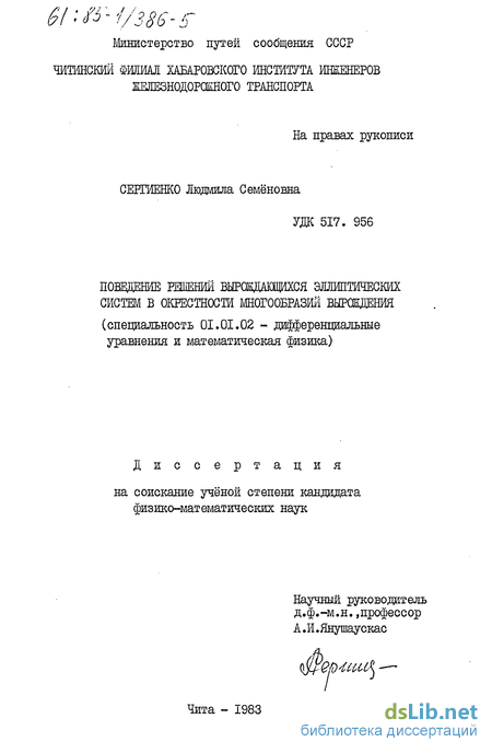 У й* +*U*~Ot (ПЬ>0) , которое названо по имени одного из первых своих исследователей уравнением Трикоми. В настоящее время по вырождающимся уравнениям и системам с двумя независимыми переменными написано много работ. Например', вырождающиеся эллиптические системы и уравнения специального вида рассмотрены в книгах и статьях А.В.Бицадзе [1-3], М.Й.Вишика [7], М.В.Келдыша [іб], Л.Г.Михайлова [2l], З.Д.Усманова [36] и др. Систематическому изложению теории вырождающихся эллиптических и гиперболических уравнении с двумя независимыми переменными посвящена монография М.М.Смирнова [ЗО].