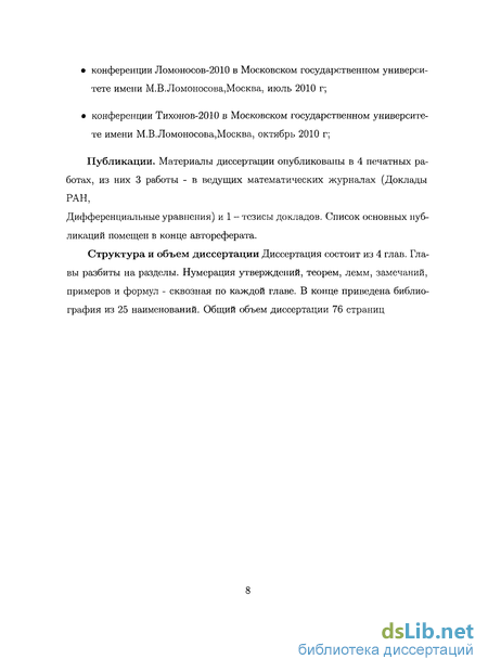 Материалы диссертации опубликованы в 4 печатных работах, из них 3 работы - в ведущих математических журналах (Доклады РАН, Дифференциальные уравнения) и 1 работа — тезисы докладов. Список основных публикаций помещен в конце автореферата.