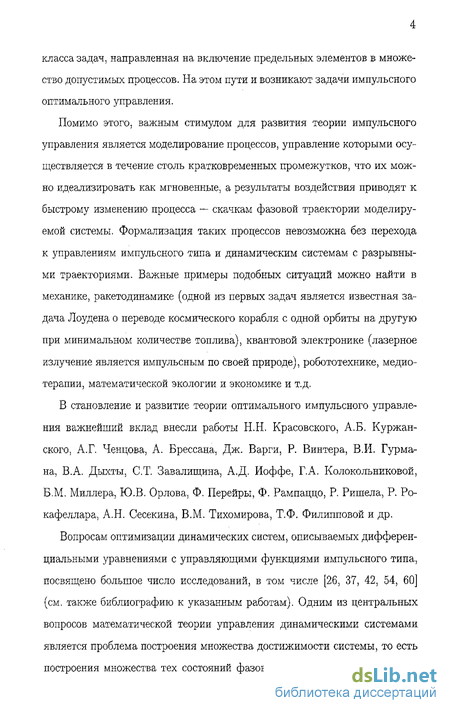 В становление и развитие теории оптимального импульсного управления важнейший вклад внесли работы Н.Н, Красовского, А.Б, Куржан-ского, А.Г. Ченцова, А. Брессана, Дж. Варги, Р. Винтера, В.И. Гурмана, В.А. Дыхты, СТ. Завалищина, А.Д. Иоффе, Г.А. Колокольниковой, Б.М. Миллера, Ю.В. Орлова, Ф. Перейры, Ф. Рампаццо, Р. Ришела, Р. Ро-кафеллара, А.Н. Сесекина, В.М. Тихомирова, Т.Ф. Филипповой и др.