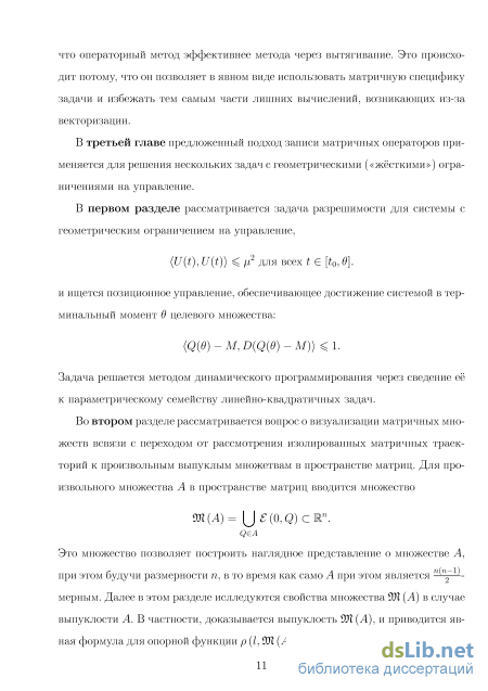Определение 5. Произведением двух матриц одинакового размера А = {а }, В = {bij} Є Mnxm по Адамару называется матрица С Є Mnxm; такая, что С = А о В = {су} 1, dj = aijbij. Определение 6. Оператор V Є С (Rnxm}Шпхт) называется диагональным, если существует такая матрица М Є Mnxm; что для всех X Є Mnxm выполнено VX = МоХ. Из лемм 11,12 сразу же получаем следующую теорему. Теорема 5. Если найдутся такие ортогональные матрицы U и V, а также положительная (т.е. все элементы которой положительны) матрица А, что для любого X Є Rnxn верно либо AX = V{Ao(UXV))U , либо AX = V{Ao(UX V))U . то Л — симметричный положительно определенный оператор надШпхп. 3.4.3 Внешние оценки множества достижимости
