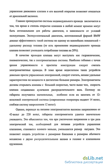 управления движением клапана и его высотой открытия позволяет отказаться от дроссельной заслонки.