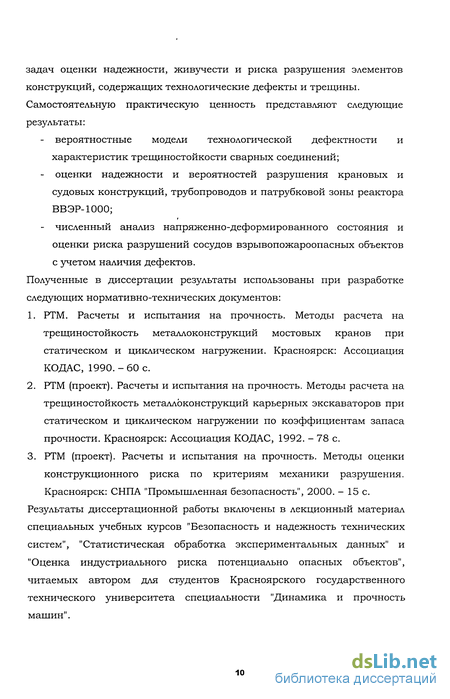 Апробация работы. Основные результаты диссертации докладывались на следующих симпозиумах, конференциях и семинарах: Научно-технической конференции "Применение методов механики разрушения в расчетах строительных металлических конструкций на хрупкую прочность и долговечность" (Красноярск, 1984); Всесоюзном симпозиуме по механике разрушения (Житомир, 1985); Научно-технической конференции "Методы и пути повышения трещиностойкости и надежности труб, трубопроводов и сосудов давления" (Челябинск, 1985); Всесоюзной научно-технической конференции "Эксплуатационная надежность машин, роботов и модулей гибких производственных систем" (Свердловск, 1987); Международной конференции по экологии Байкала (СибЭКО-93) (Иркутск, 1993); 8-ой международной конференции по механике разрушения (Киев, 1993); 11-ой Международной научно-практической конференции "Научные проблемы материаловедения при изготовлении и эксплуатации оборудования АЭС" (Санкт-Петербург, 1992); Втором Российско Американском семинаре по проекту "Партнерство ASME-PAH" "Охрана окружающей среды и инженерная безопасность" (Москва, 1996); Третьем Российско-Американском семинаре по проекту "Партнерство ASME-PAH" "Продление ресурса безопасной эксплуатации" (Москва, 1997); Всероссийской конференции "Проблемы защиты населения и территорий от чрезвычайных ситуаций" (Красноярск, 1997); Региональном семинаре "Технология и качество сварки в условиях низких температур" (Якутск, 1997); V научной конференции "Современные методы математического моделирования природных и антропогенных катастроф" (Красноярск, 1999); Международной конференции "Математические модели и методы их исследования" (Красноярск, 1999).