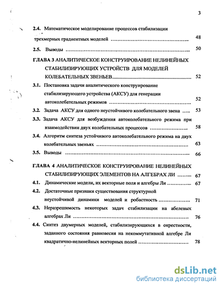 Такие системы характерны для моделей машин синтезированных на" -апериодических звеньях со взаимодействием между ними, индуцированном контурами обратных связей. Проведено математическое моделирование поведения конкретных систем, и получены фазовые портреты процессов стабилизации в пакете MAPLE-8. В третьей главе предлагается алгоритм синтеза автоколебательного режима с регулируемой амплитудой для технических систем, модели которых представляют совокупность двух колебательных звеньев. Получены фазовые портреты процессов стабилизации в пакете MAPLE-8. В четвертой главе доказана неразрешимость некоторых задач синтеза для стабилизации на коммутативных алгебрах Ли моделей конечных размерностей. Неразрешимость на абелевых алгебрах Ли этих задач имеет прозрачную интерпретацию в плане технической реализуемости моделей, что связано с отсутствием свойства робастности на таких алгебрах. Для двумерных моделей синтезирована некоммутативная алгебра Ли. Сформулирована и решена задача стабилизации для двух связных апериодических звеньев на данной алгебре Ли. Дана иллюстрация процессов аварийной стабилизации в пакете MAPLE-8. Доказано, что синтез устойчивой динамики в окрестности нового состояния равновесия сопровождается формированием петель в пространстве состояний стабилизируемой модели. Данный синтез позволяет решить задачу аварийной стабилизации в окрестности запасного режима, в случае срыва динамики процесса с основного режима функционирования элементов машины.