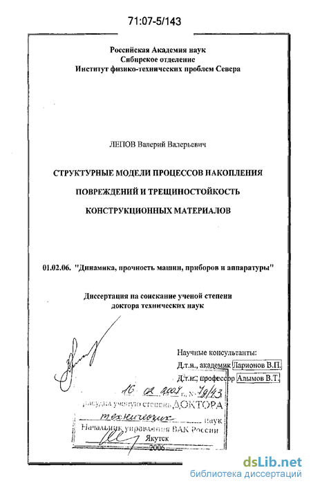 НАПРАВЛЕНИЕ ИССЛЕДОВАНИЙ. Теоретические и экспериментальные исследования, направленные на развитие теории предельных состояний, вычислительной механики разрушения, статистической и теории замедленного разрушения, локального (микромакроскопического) и эволюционного подходов в механике твердого тела, носят фундаментальный характер.