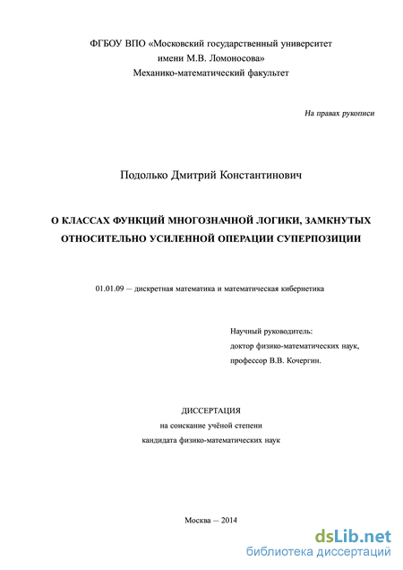 В первой главе введены основные понятия и определены новые операторы замыкания. Каждая функция F из Рк, зависящая от п переменных, п 1, естественным образом кодируется в двоичной системе счисления. Тем самым ей сопоставляется булева вектор-функция F, содержащая т компонент, каждая из которых зависит от тп переменных, и называемая двоичным представлением функции F. В разделе 1.2 определена операция двоичной 5-суперпозиции, которая подобна операции (обычной) суперпозиции, но, в отличие от нее, позволяет при построении новых функций специальным образом переставлять компоненты двоичных представлений функций fc-значной логики между собой. Для оператора замыкания относительно операции двоичной 5-суперпозиции, который назван -замыканием, на основе примера замкнутых классов со счетным базисом, предложенного Ю. И. Яновым и А. А. Мучником11, установлена континуальность семейства -замкнутых классов функций из Рк\2 (теорема 1.1).