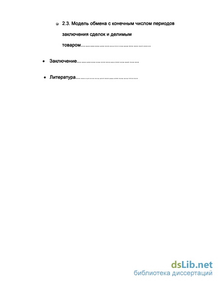 - Модель обмена с конечным числом периодов заключения сделок и делимым товаром