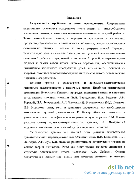 Глава I. Теоретические основы развития чувства ритма у детей средствами музыки *3