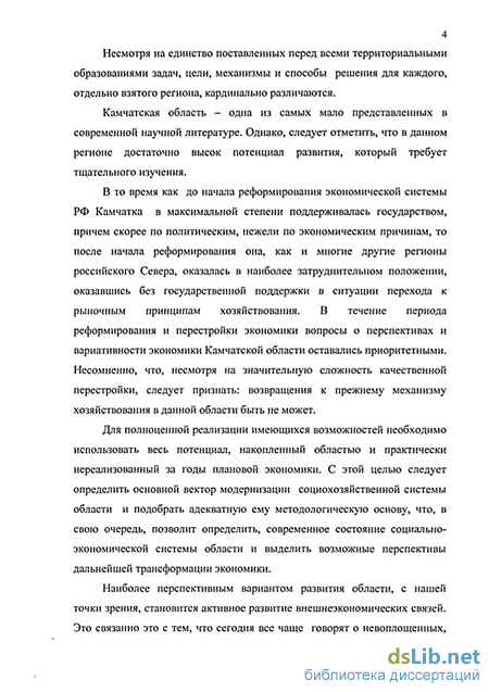 4 экономическим причинам, то после начала реформирования она, как и многие другие регионы российского Севера, оказалась в наиболее затруднительном положении, оказавшись без государственной поддержки в ситуации перехода к рыночным принципам хозяйствования. В течение периода реформирования и перестройки экономики вопросы о перспективах и вариативности экономики Камчатской области оставались приоритетными. Несомненно, что, несмотря на значительную сложность качественной перестройки, следует признать: возвращения к прежнему механизму хозяйствования в данной области быть не может.