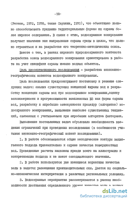 Цель диссертационного исследования - разработка экономико-географических аспектов водоохранного зонирования.