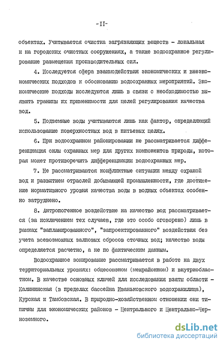 4. Исследуется сфера взаимодействия экономических и внеэкономических подходов к обоснованию водоохранных мероприятий. Экономические подходы исследуются лишь в связи с необходимостью выявить границы их применимости для целей регулирования качества вод.
