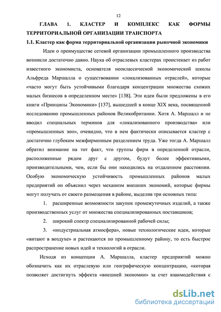 ГЛАВА 1. Кластер и комплекс как формы территориальной организации транспорта 1 2 12